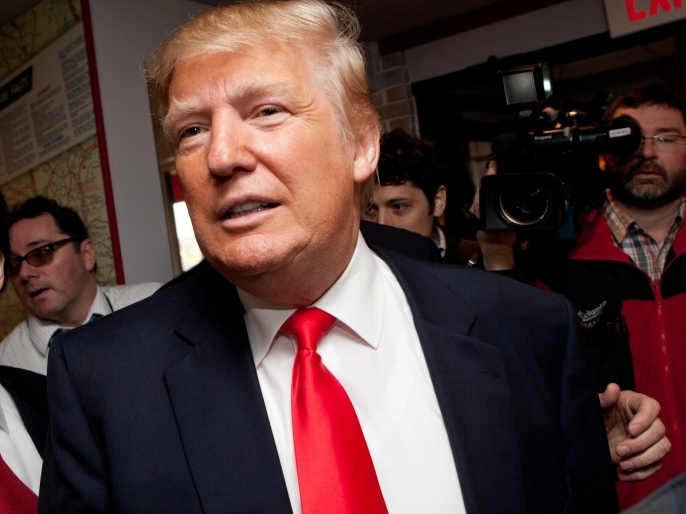 Donald Trump arrives at the Roundabout Diner in New Hampshire. Trump has questioned President Obama's status as a citizen of the U.S. He was answered this morning when the Obama administration released the President's birth certificate. Matthew Cavanaugh/Getty Images hide caption
