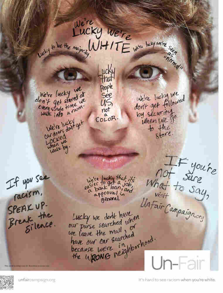 One of the posters from the Un-Fair Campaign's anti-racism effort. Click to see more. unfaircampaign.org hide caption