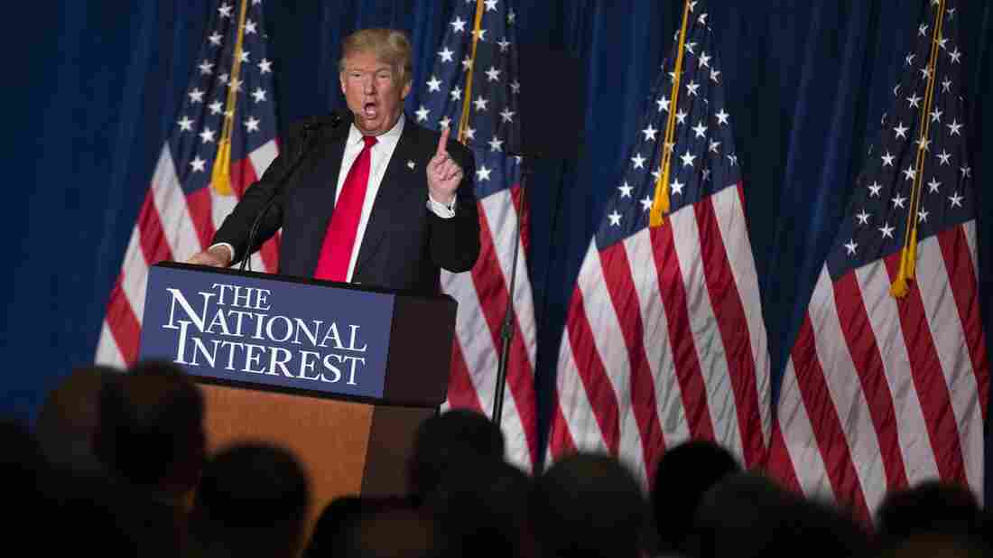Donald Trump, the front-runner for the Republican presidential nomination, gave an outline of his worldview and foreign policy goals in an address in Washington Wednesday. Evan Vucci/AP hide caption
