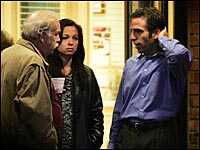 Terri Schiavo's father Bob Schindler talks with his daughter Suzanne and son Bobby in lobby of the Woodside Hospice on Monday. hide caption