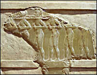 Milking scene from the Temple of Ninhursag, from Tell al Ubaid, c. 2400 B.C.