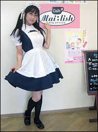 Male otaku live out their fantasies at "maid cafes," where they are waited on by maids whose costumes come from erotic comic books. Sayaka is dressed for work at the Mailish maid cafe.