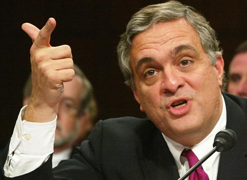 Then-CIA Director George Tenet makes a point as he testifies April 14, 2004, before the 9/11 Commission. He defended the agency's pre-Sept. 11, 2001, efforts on combating terrorism.