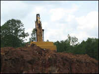 Bulldozers move red clay to make way for terraced ponds — the fourth phase of the wetlands. Construction is expected to be completed in 2010.