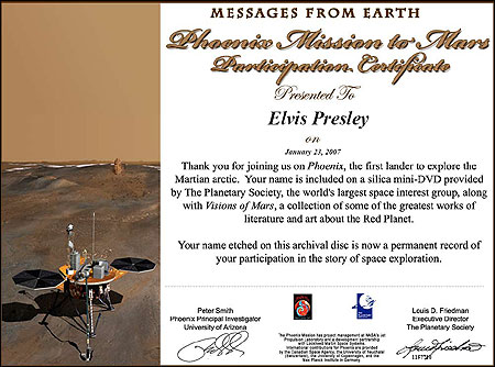 The names of Elvis Presley, Donald Duck, John Lennon and Adolf Hitler are all onboard the Phoenix lander.