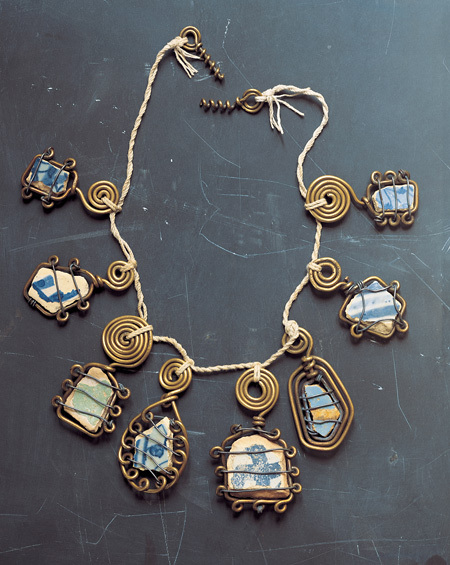 Necklace, 1930. Calder used brass wire, ceramic and string to commemorate his mother's birthday.