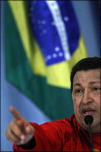 Venezuela's President Hugo Chavez speaks at a news conference during a visit to Brazil on Tuesday.