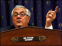 Rep. Barney Frank speaks on Capitol Hill on Wednesday in front of the leaders of the "Big Three" automakers.