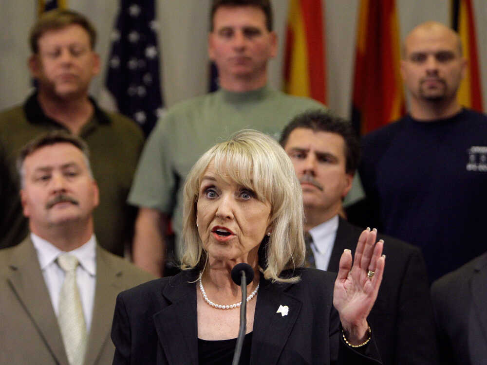 Ross D. Franklin/APArizona Gov. Jan Brewer signed a controversial bill Friday that makes it a crime for illegal immigrants to be in the state. The new law will require local police to seek proof of immigration status if there is reason to suspect individuals are illegal immigrants.