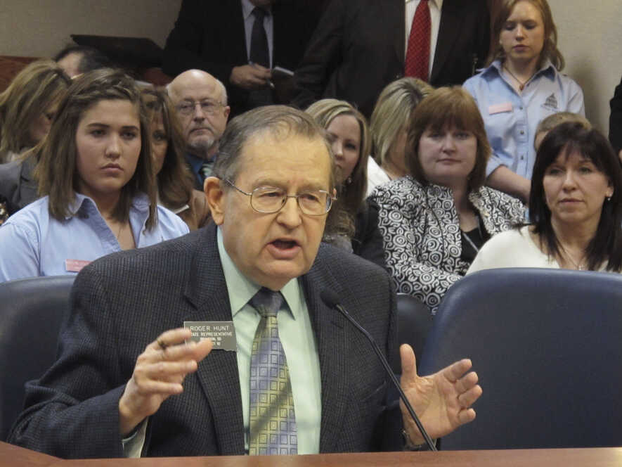South Dakota state Rep. Roger Hunt, shown speaking to the South Dakota House Judiciary Committee last month about his latest abortion bill, has been drafting abortion restriction legislation for more than a decade.