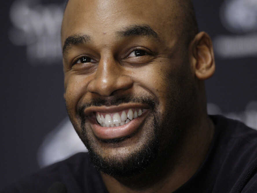 Boxer Bernard Hopkins listens during a news conference in New York City on March 29. Last week Hopkins questioned McNabb's "blackness" because the football player had a more middle-class upbringing. Richard Drew/AP hide caption