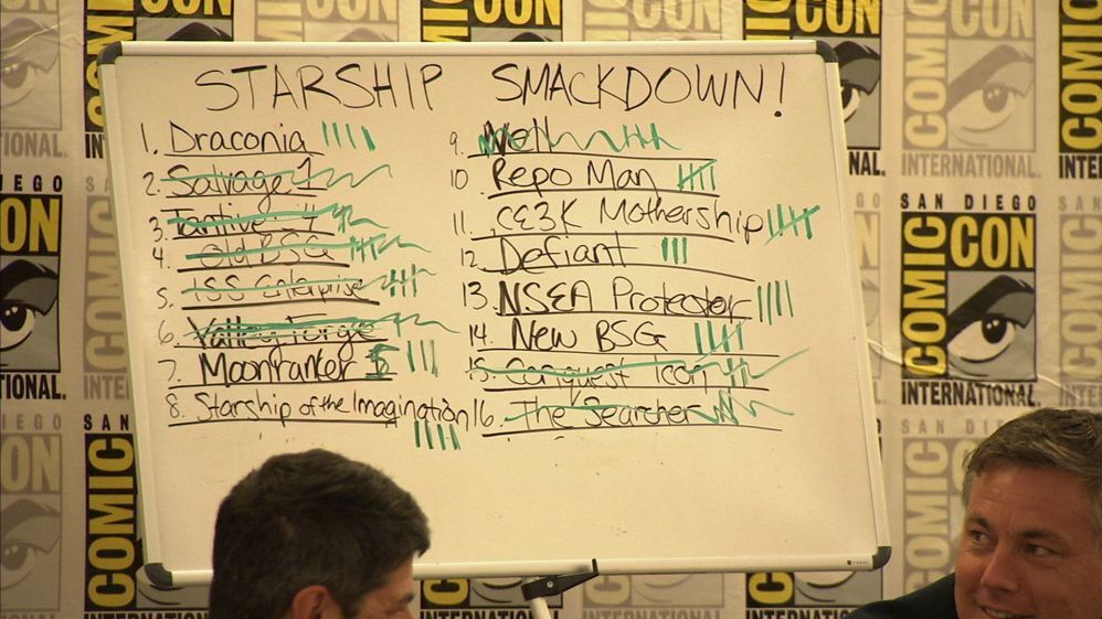 In case you need a little more: For the last 10 years, the event has been the closing panel for San Diego Comic-Con, the biggest annual pop culture convention in the U.S. Starship Smackdown answers the continual debate geeks have about whether the Enterprise would kick the Millennium Falcon's butt in a space rumble.