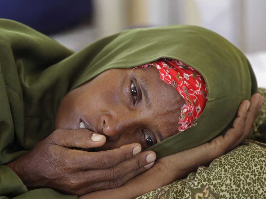 A malnourished woman lies in a field hospital of the International Rescue Committee, IRC, in the town of Dadaab, Kenya, Tuesday, July 26, 2011. The U.N. will airlift emergency rations this week to parts of drought-ravaged Somalia that militants banned it from more than two years ago, in a crisis intervention to keep hungry refugees from dying along what an official calls the "roads of death." Schalk van Zuydam/AP hide caption