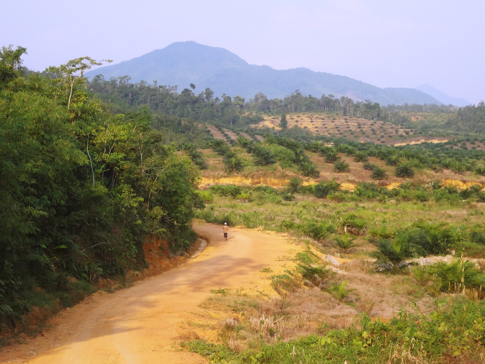 A dirt road passes through remote Sekendal village in Indonesia's western Borneo. Some 60 percent of the island's forests have been cut down, and only 8 percent of the islands virgin forests remain, mostly in national parks.