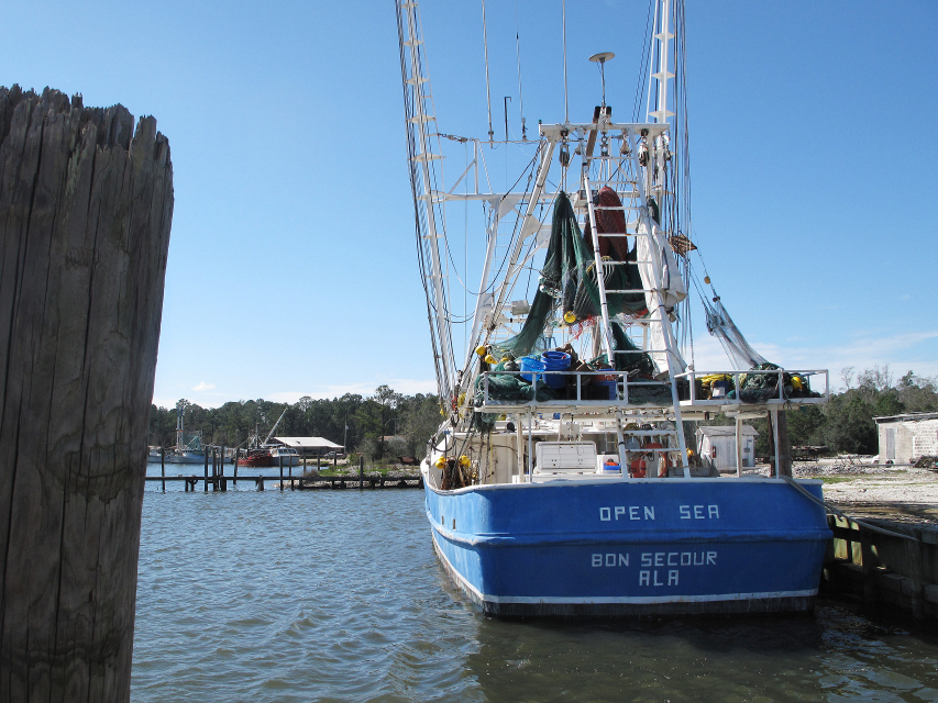 One area still struggling to come back from that disaster is Bon Secour, Ala., a sleepy fishing village on the Bon Secour River just off Mobile Bay. Here, pelicans and osprey camp out on docks that were once lined with shrimp and oyster boats.