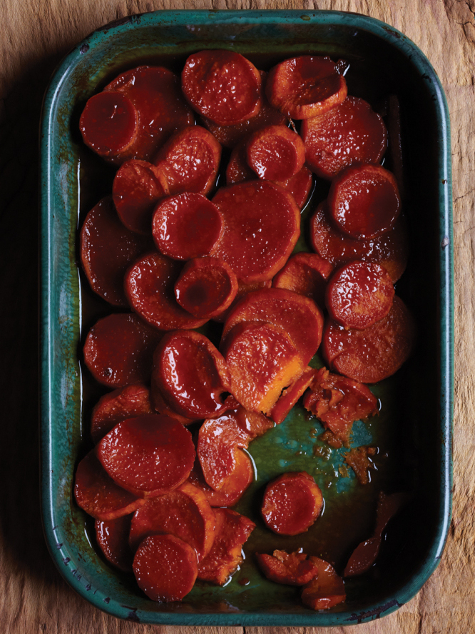 Molasses, Miso, and Maple Candied Sweet Potatoes