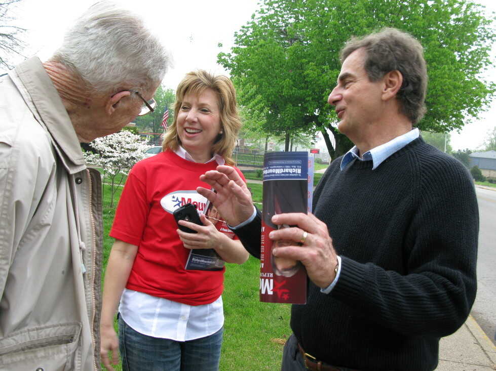 Republican Senate candidate Richard Mourdock (right) speaks with potential voters on March 31 in Evansville, Ind.