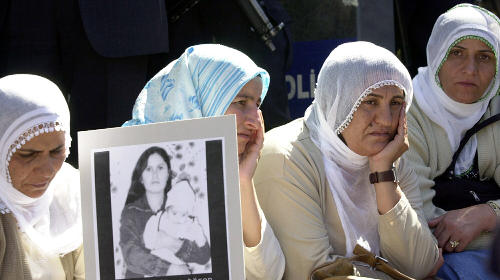 A woman holds a photo of Guldunya Toren, an unmarried mother allegedly killed by her brothers for having a child out of wedlock, outside parliament in Ankara, Turkey, in 2004. Her case prompted huge protests and forced Turks to realize that the justice system often fails to protect at-risk women.