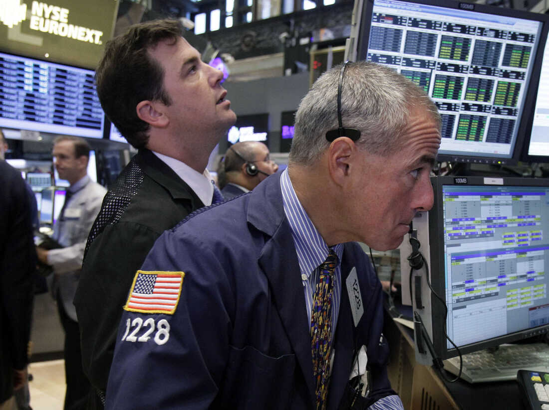 Traders work on the floor of the New York Stock Exchange. The Dow Jones industrial average is nearly back to where it was before the recession hit in 2007.