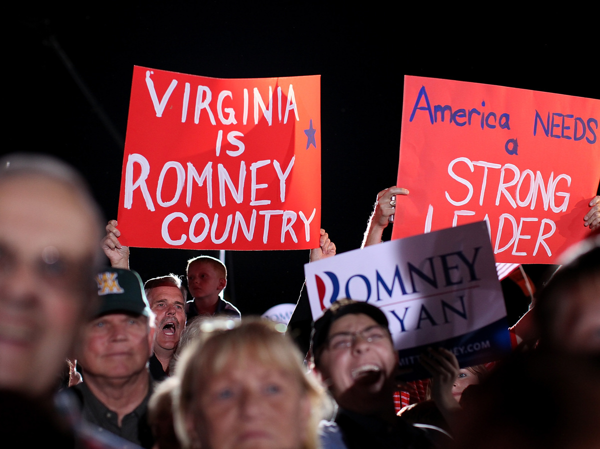 Supporters of Republican Mitt Romney during a campaign rally Thursday in Fishersville, Va. Justin Sullivan/Getty Images hide caption