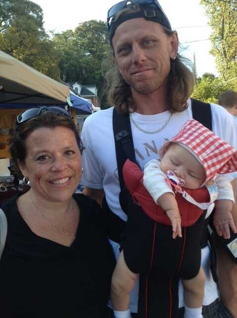 Wendy Leedy, John Gaugush and 3-month-old Isabel at the annual craft fair in Occoquan. Says Gaugush: "I think most people in America are not far right, and not far left, but are forced to pick one or the other." Liz Halloran/NPR hide caption