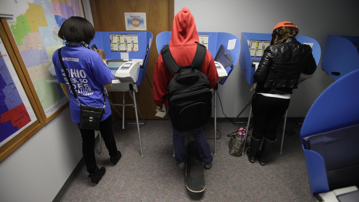 Voters cast their ballots during early voting in Bowling Green, Ohio. Early voting began Oct. 2 in the battleground state, five weeks before Election Day on November 6.
