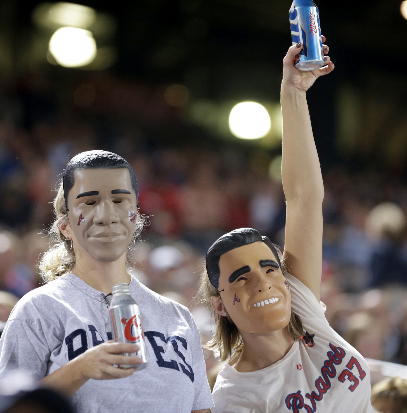 Fans wear President Obama and Mitt Romney masks at the Atlanta Braves-Miami Marlins game Sept. 25 in Atlanta. One of many quirky election year predictors is based on which candidate's likeness sells better as a Halloween mask.