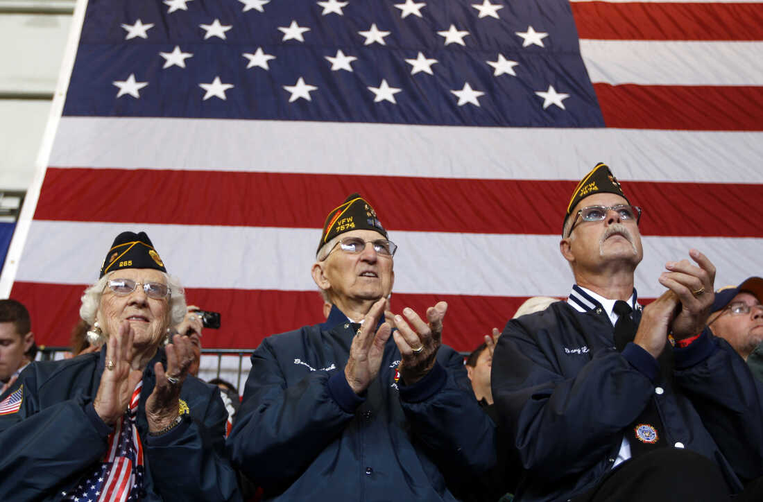 Veterans applaud at an Oct. 8 campaign event in Swanton, Ohio, for Republican vice presidential candidate Paul Ryan. Health care and unemployment are among veterans' chief concerns this election season, and both the Obama and the Romney campaigns have offered solutions.