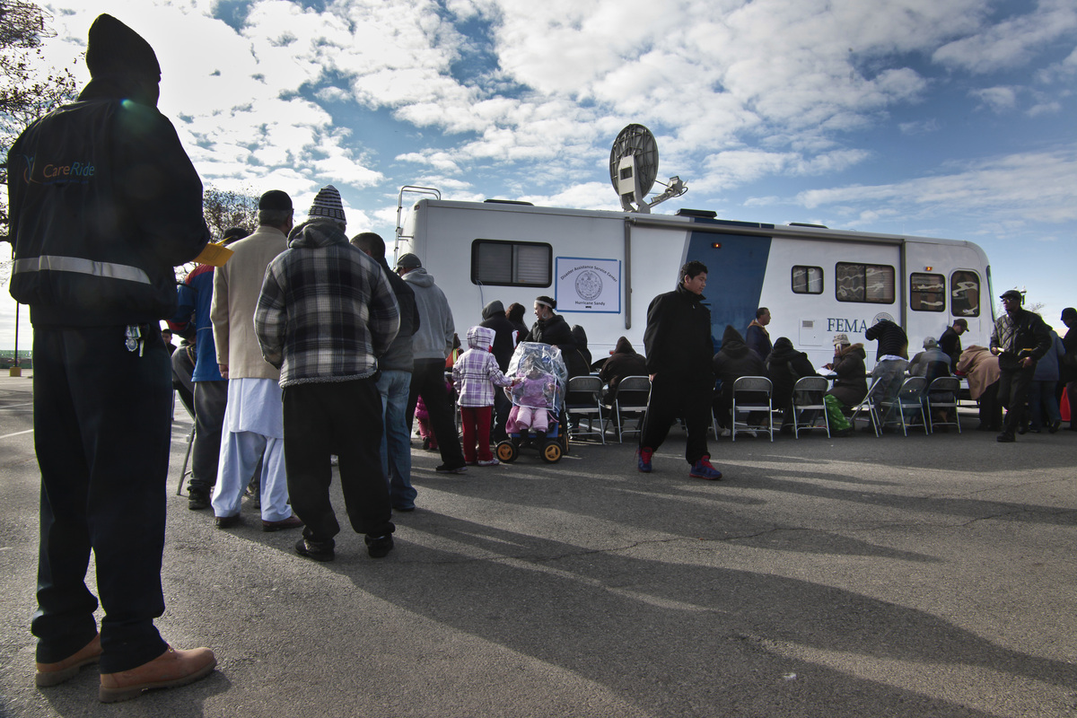 Victims of Superstorm Sandy wait in line to apply for recovery assistance at a FEMA processing center Friday on New York's Coney Island. The agency has been praised for its response to the storm.