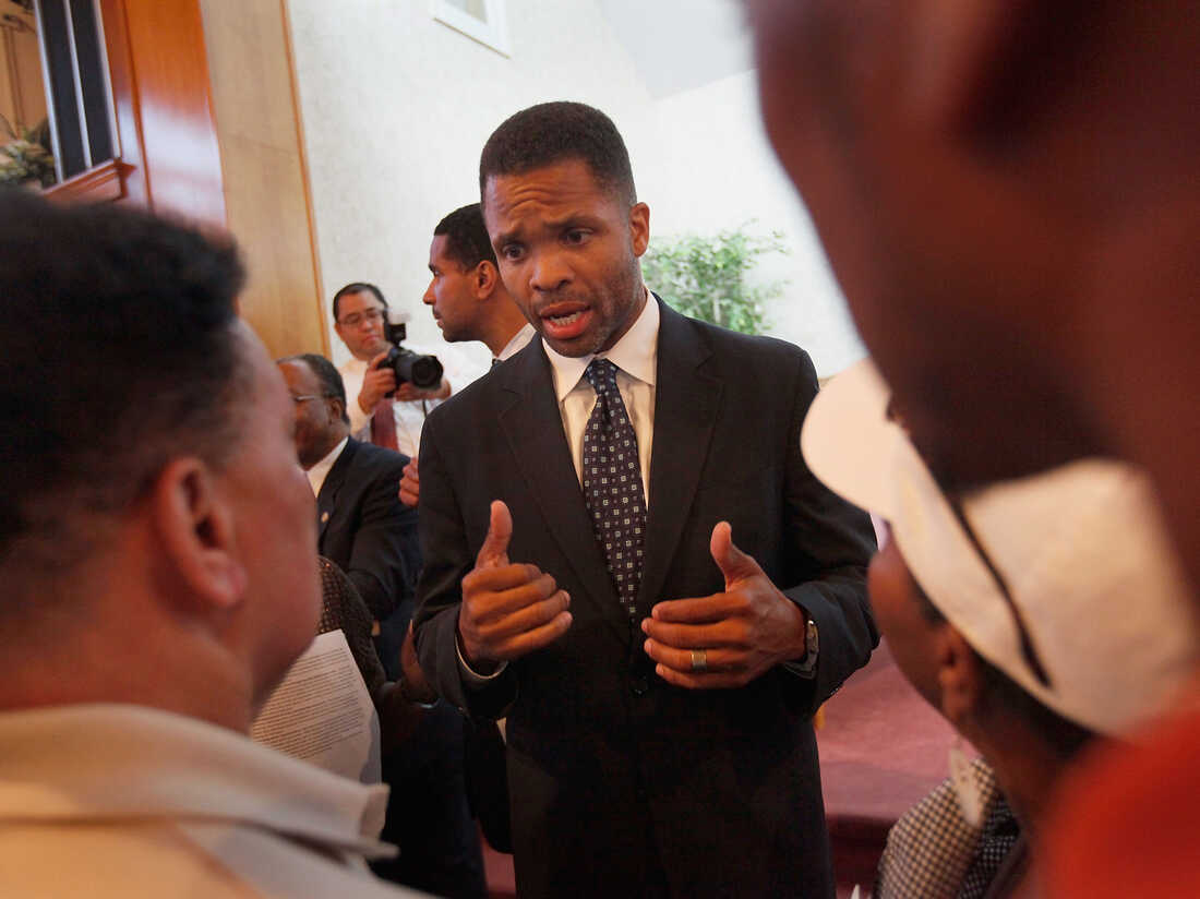 Rep. Jesse Jackson Jr. speaks to constituents in Chicago in 2009. Jackson resigned from Congress on Wednesday, following a hospitalization and an investigation into misuse of campaign funds.