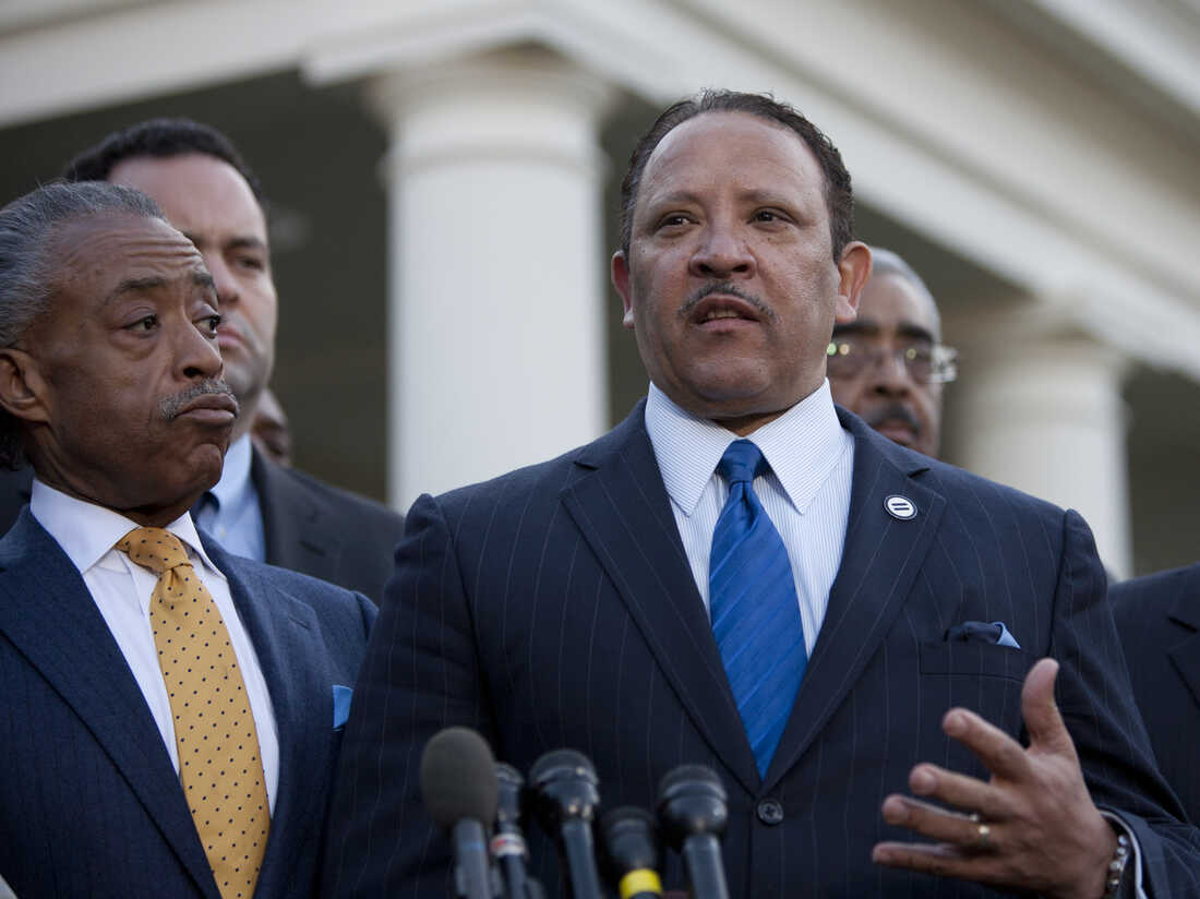 The National Urban League's Marc Morial (center) joins other civic leaders speaking outside the White House after they met with President Obama last month.