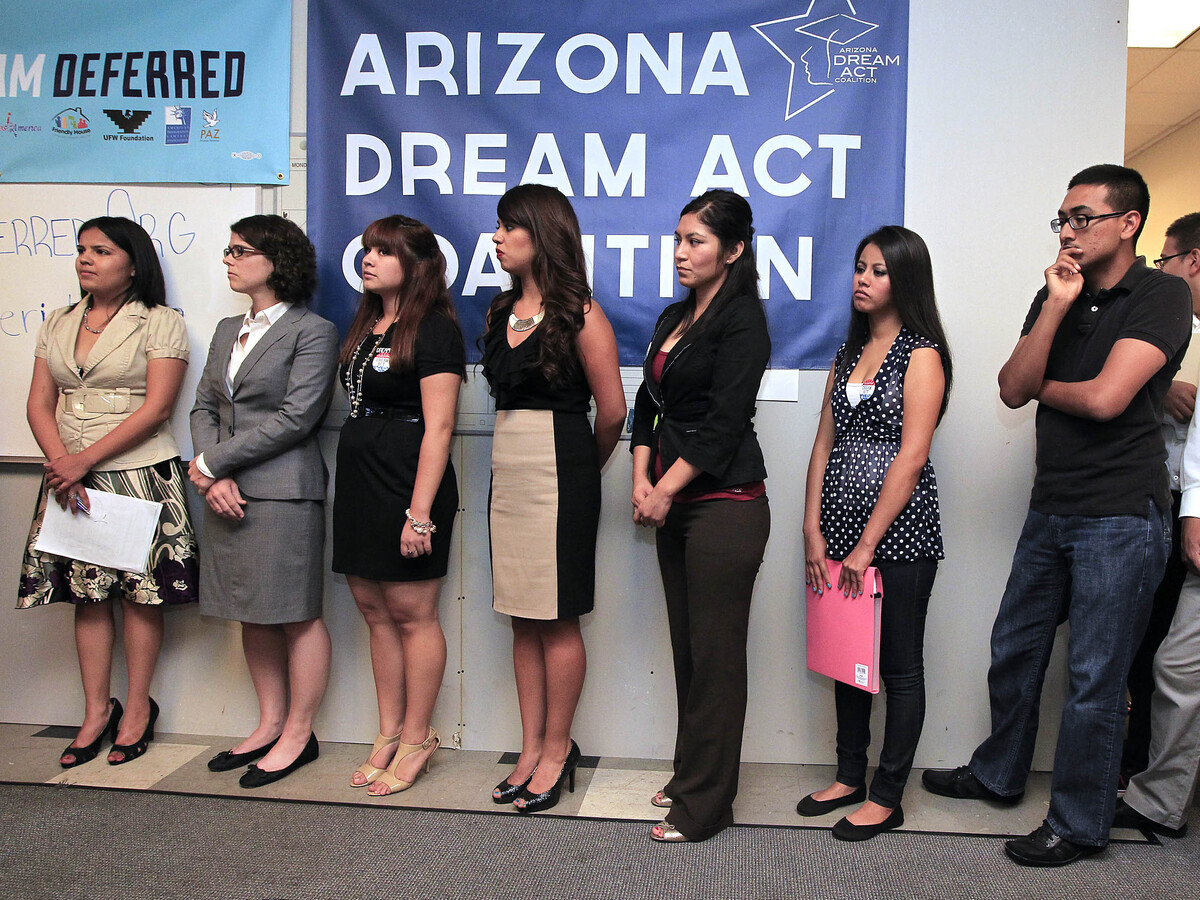 Arizona DREAM Act Coalition staff members, other advocacy group representatives and young immigrants line up in Phoenix last August for guidance about the federal program called Deferred Action, that would help illegal immigrants avoid deportation.