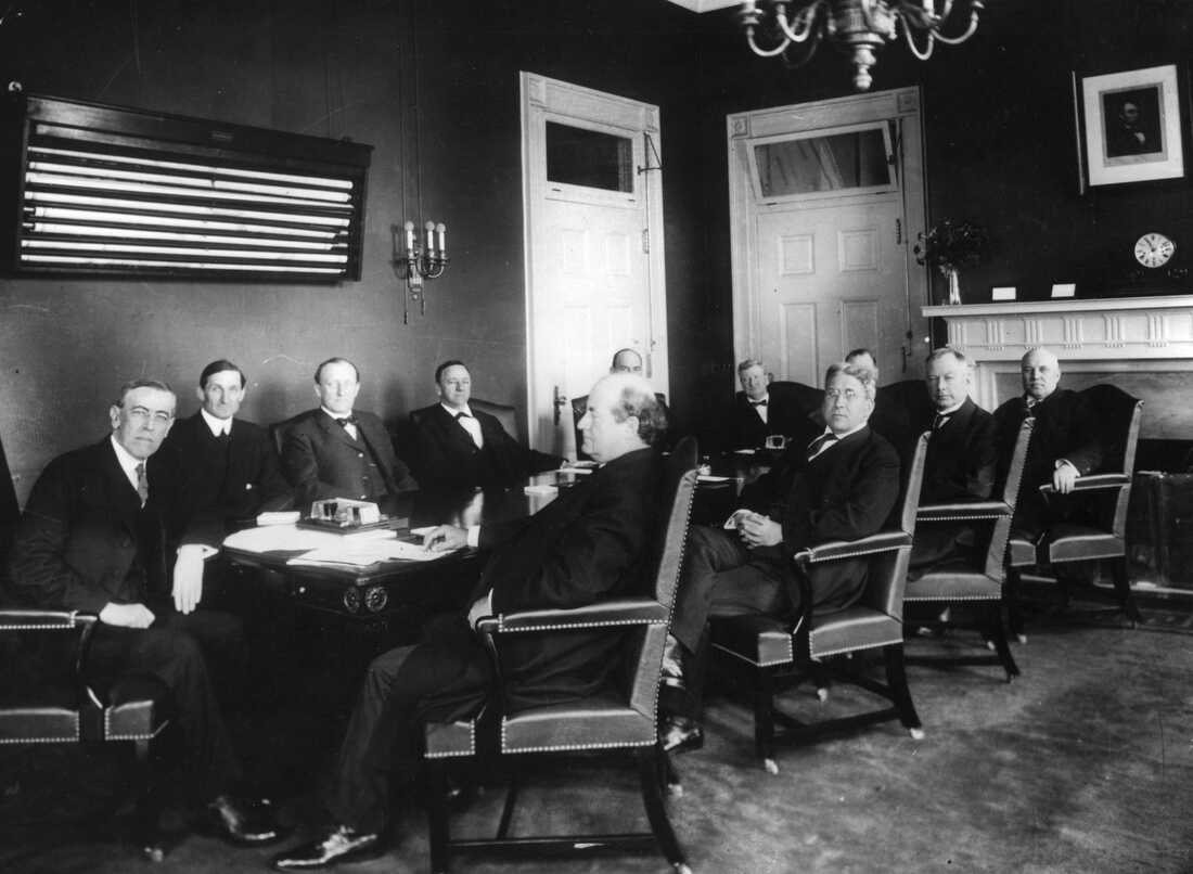 President Woodrow Wilson meets with his first Cabinet, circa 1912. Should Cabinets have a more central role in a president's decision making?