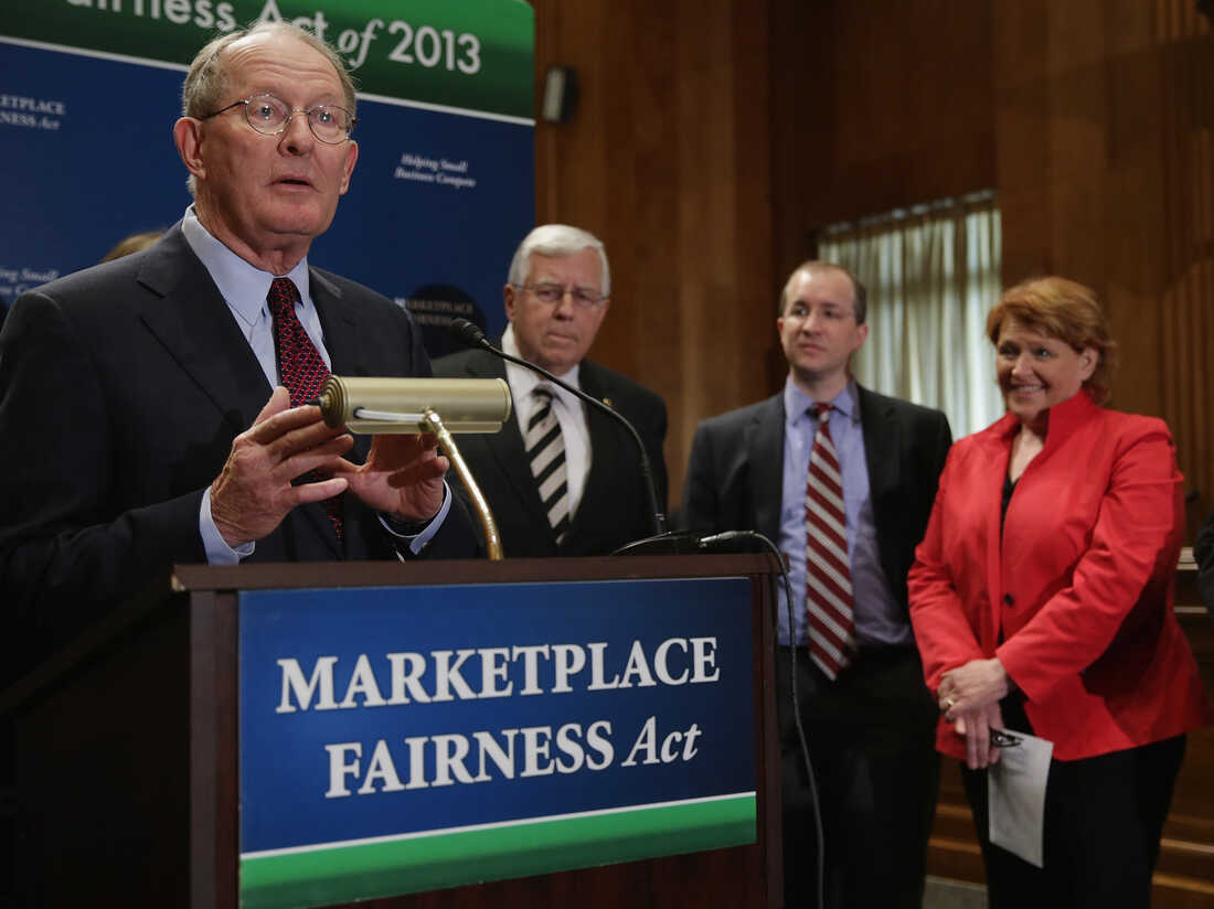 Sen. Lamar Alexander, R-Tenn. (left), leads a news conference about the Marketplace Fairness Act on Tuesday. The legislation would provide states with the authority to require out-of-state retailers to collect and remit taxes on purchases shipped into the states.