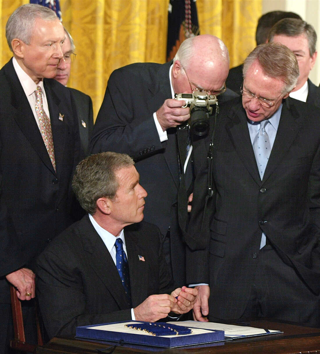 President Bush signs the Patriot Act Bill during a ceremony in the White House East Room on Oct. 26, 2001.