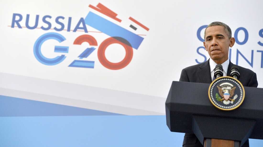 President Obama holds a press conference in St. Petersburg, Russia, on Friday on the sideline of the G-20 summit.