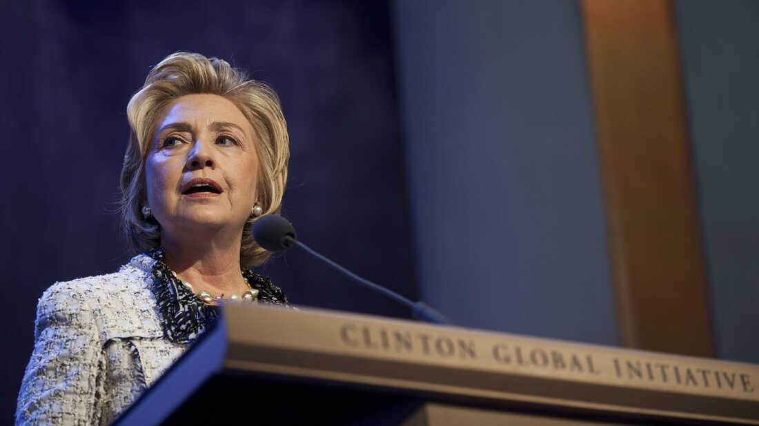 Former Secretary of State Hillary Clinton speaks during the annual Clinton Global Initiative meeting in New York City on Wednesday. Ramin Talaie/Getty Images hide caption