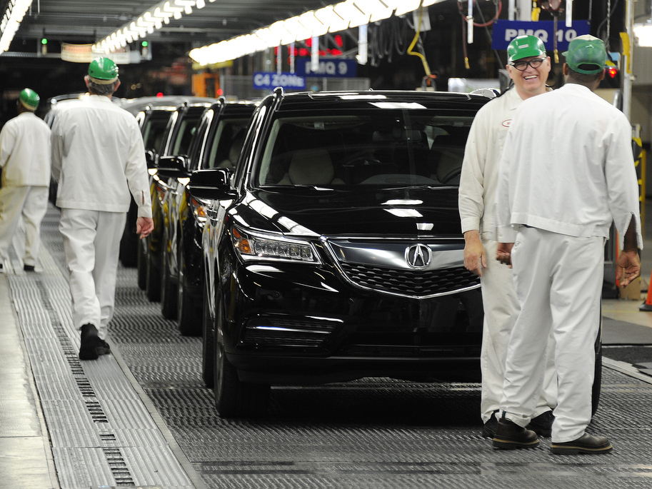 Acura MDX sport utility vehicles roll off the assembly line at a Honda plant in Lincoln, Ala., in May. Overseas investors have U.S. assets totaling nearly $4 trillion, including auto plants, banks and mines. Joe Songer/AL.com/Landov hide caption