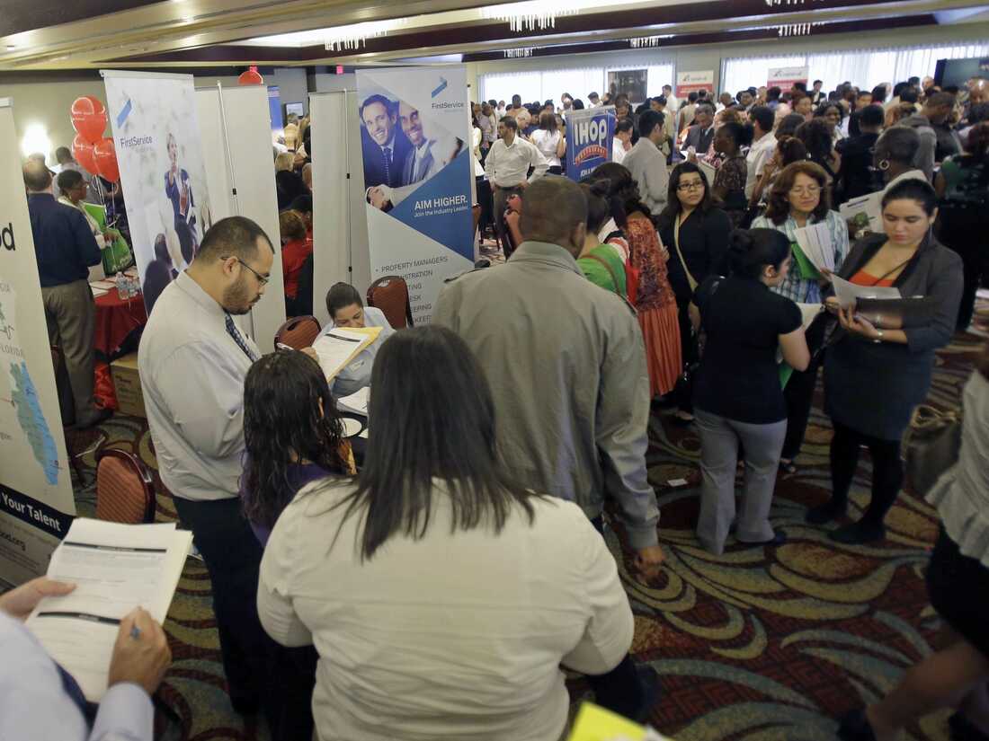 Job seekers attend at a career fair in Miami Lakes, Fla., in August. At the end of the year, 1.3 million Americans will lose their extended unemployment benefits.