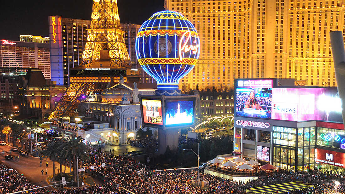 Visitors crowd the Las Vegas Strip to celebrate the new year.
