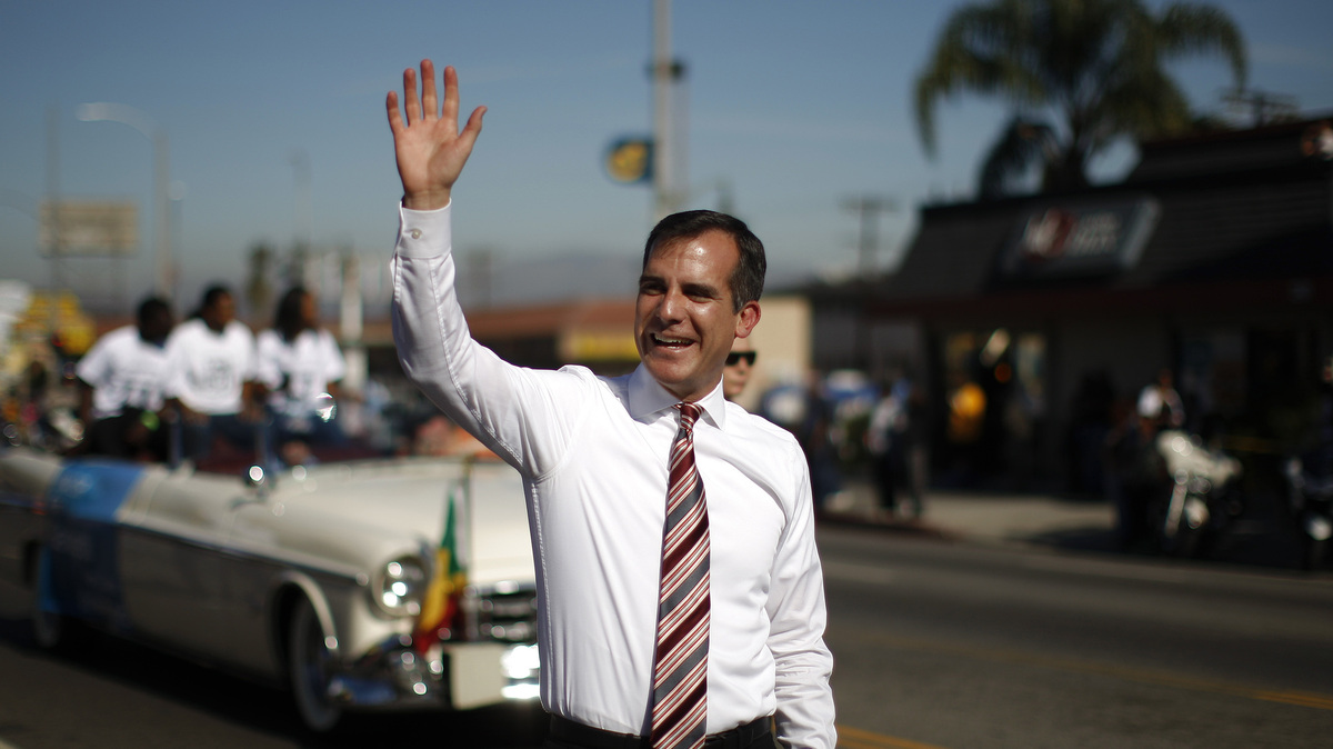 Los Angeles Mayor Eric Garcetti may have only been in office eight months, but he's got big plans. David McNew/Getty Images hide caption