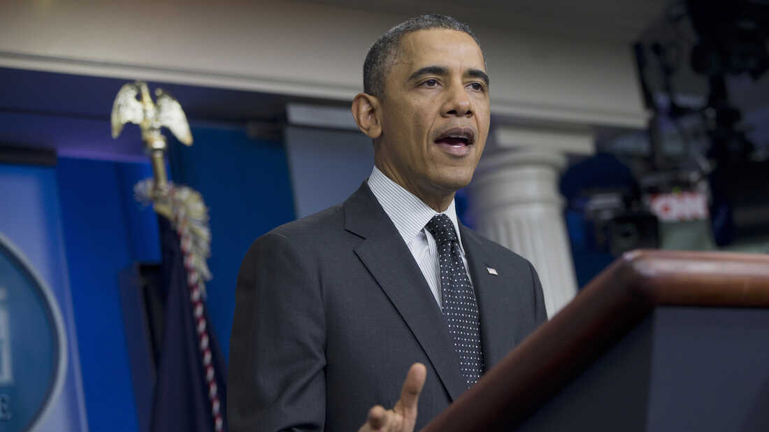 President Obama speaks in the James Brady Press Briefing Room of the White House in November 2013, shortly after the Senate voted 52-48 to weaken the power of the filibuster. Evan Vucci/AP hide caption