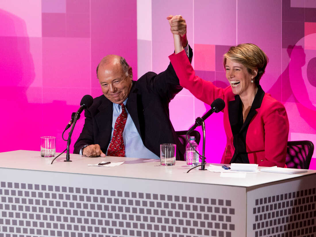 Burt Neuborne and Zephyr Teachout convinced audience members that the right to unlimited spending on political speech is not guaranteed by the Constitution. Intelligence Squared U.S. hide caption