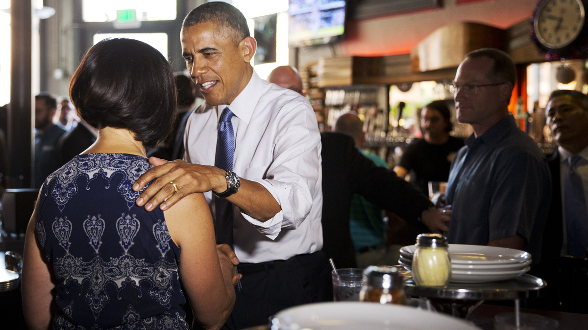President Obama greets a woman at Wazee Supper Club in Denver on Tuesday. He was in Colorado this week speaking about the economy and raising money for congressional candidates.