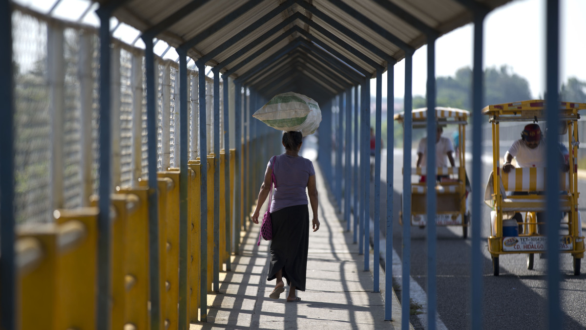 A woman walks on a Suchiate River bridge connecting Guatemala and Mexico. A State Department program allows some immigrants to bring their children to the U.S. from Honduras, El Salvador and Guatemala.
