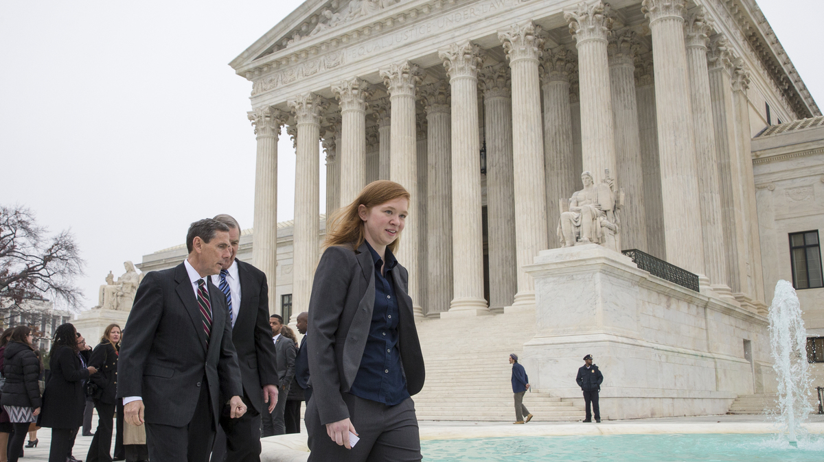 Abigail Fisher, seen outside the Supreme Court Wednesday, is a white applicant to the University of Texas who claims she was not admitted because of her race.