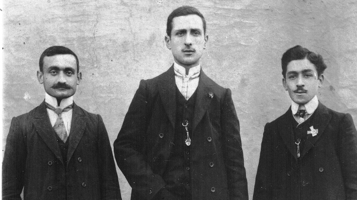 Dawn Anahid MacKeen's grandfather, Stepan Miskjian (left), is pictured with friends around 1910, just a few years before the Armenian genocide.