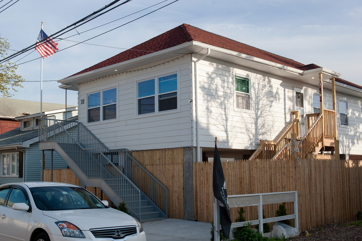 A recently elevated home in Staten Island, N.Y. Bryan Thomas for NPR hide caption