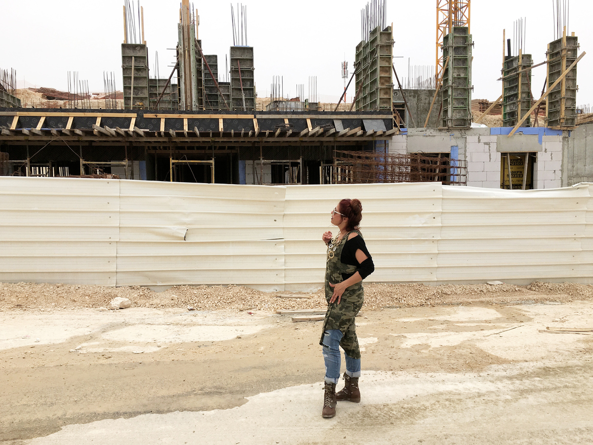 Ronit Shy stands in front of the construction site for the building that will be her future home. She was among 200 Israelis who won a housing lottery with 6,000 entrants.