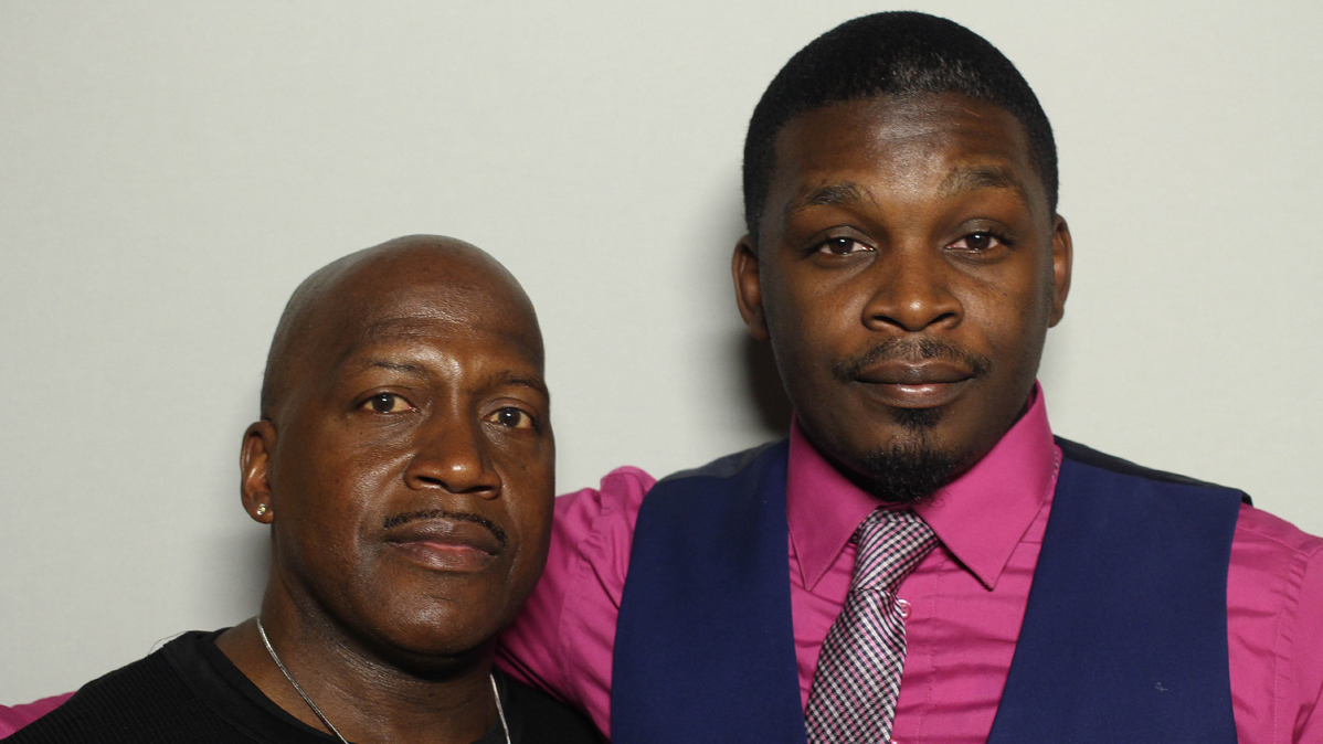 Jamal Faison (right) with his uncle, Born Blackwell, at StoryCorps in New York City.